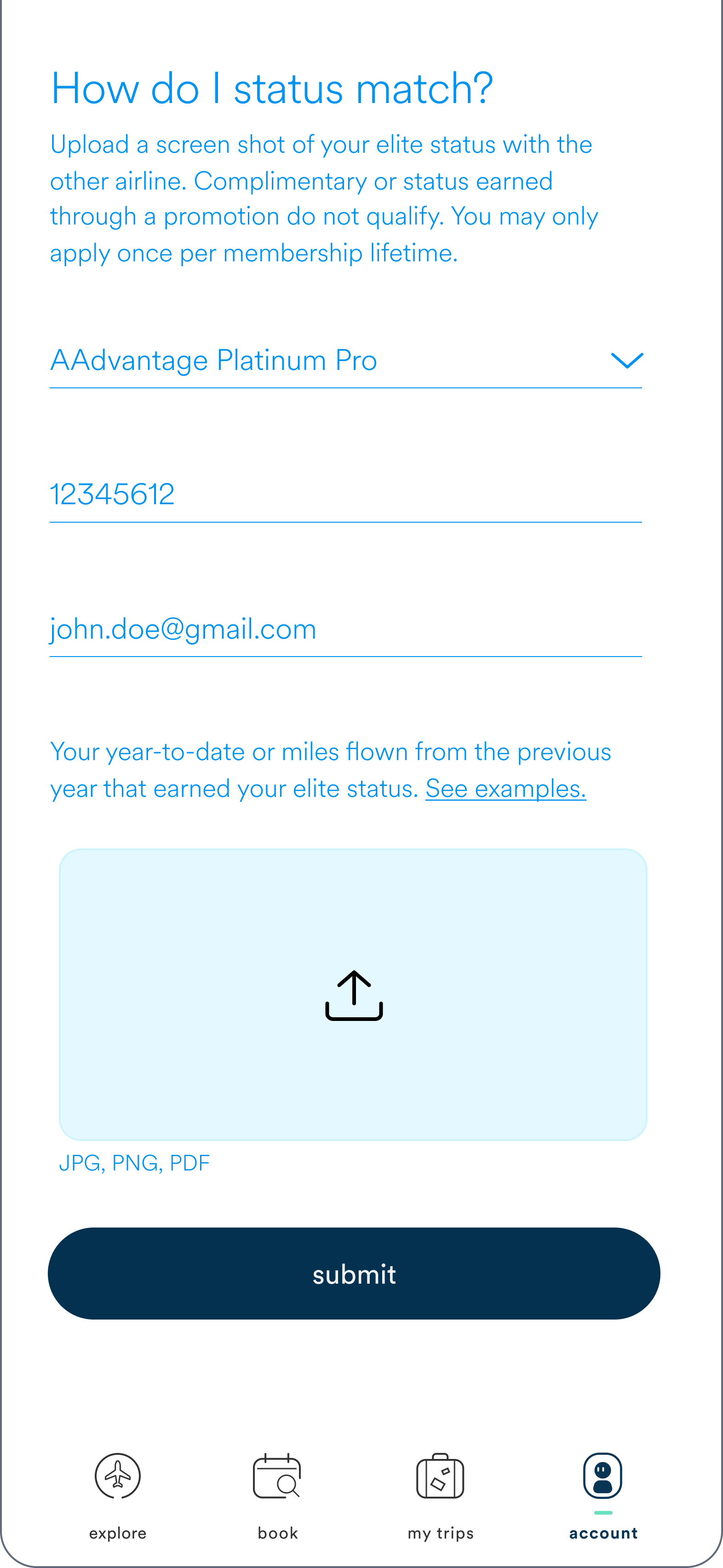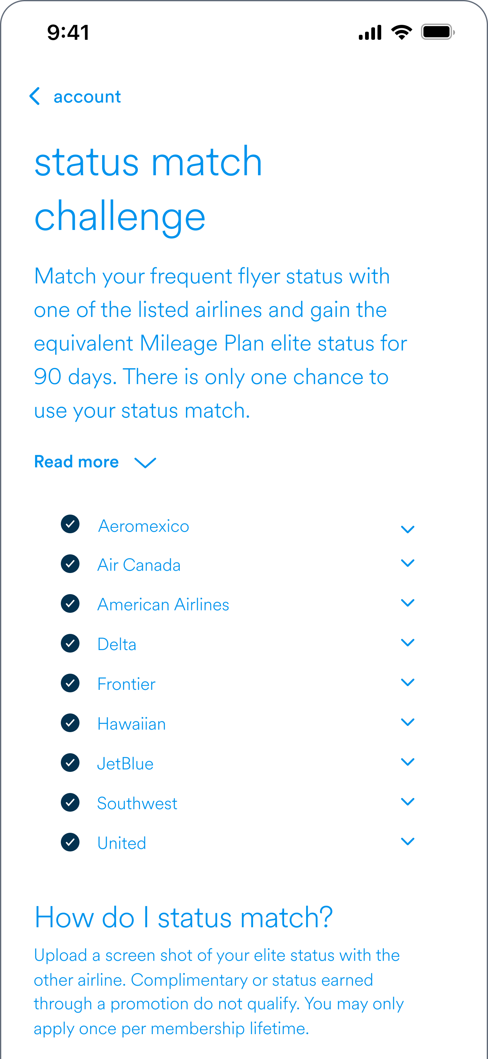 A key feature I introduced, which received great client feedback, was highlighting loyalty conversions. My research showed that most airlines with loyalty programs offer a status match, but broader program promotions often overshadow this feature.
