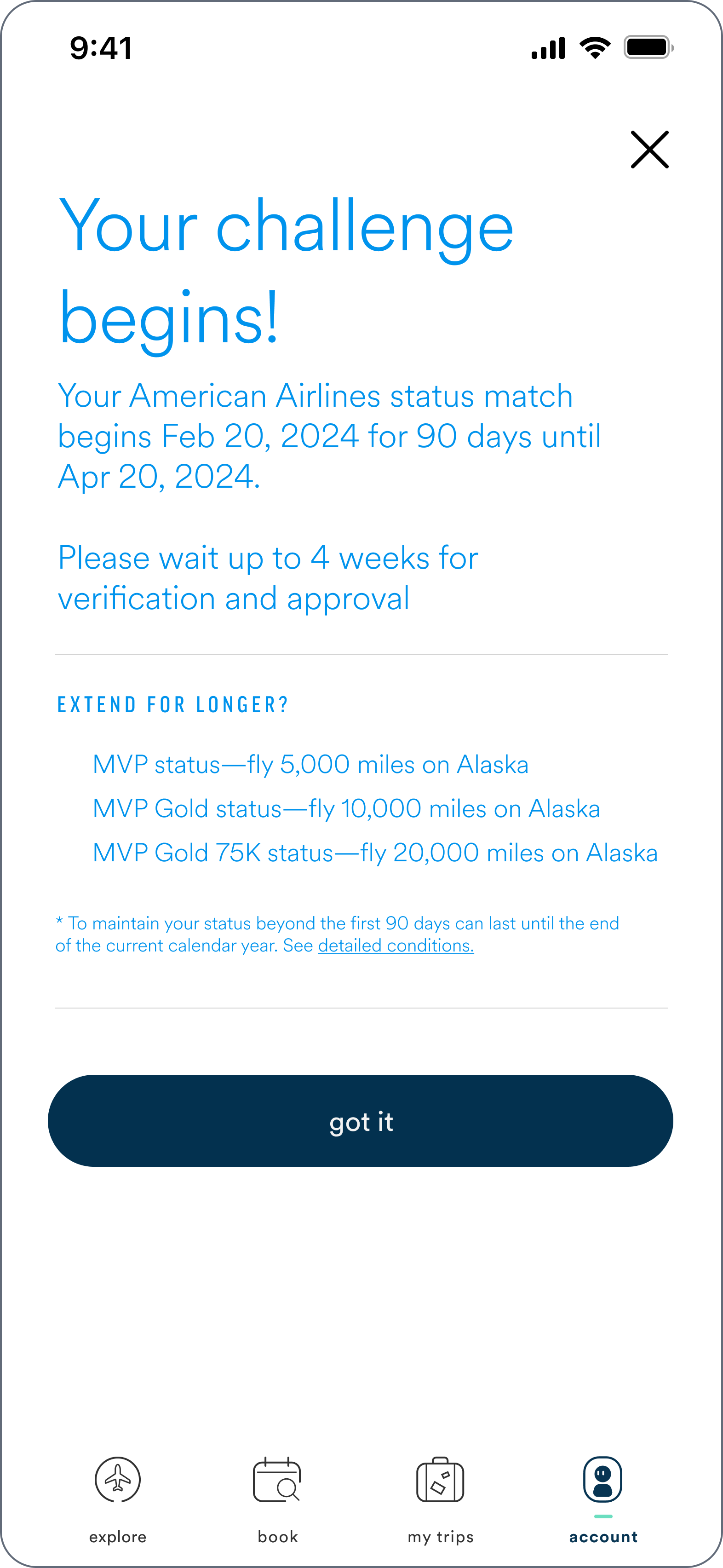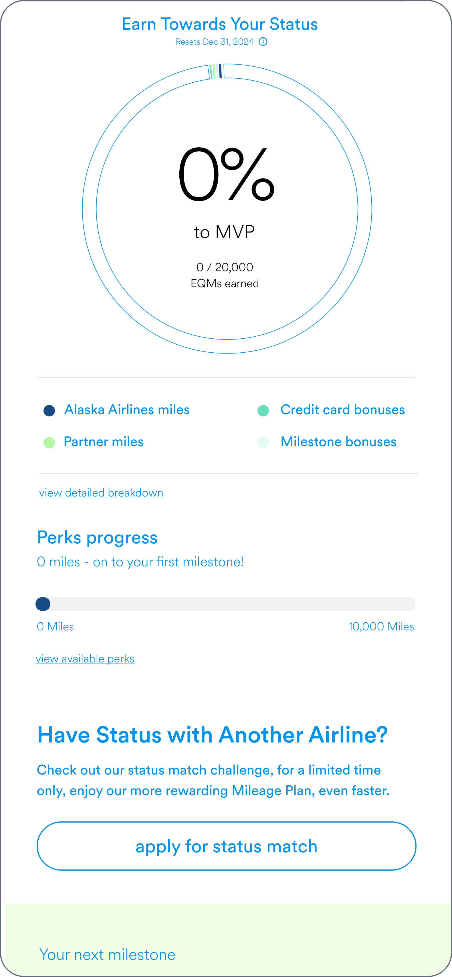 Once you start the status match, both reminders and indicators are embarking on your journey in the Alaska loyalty program, quick and seamlessly.