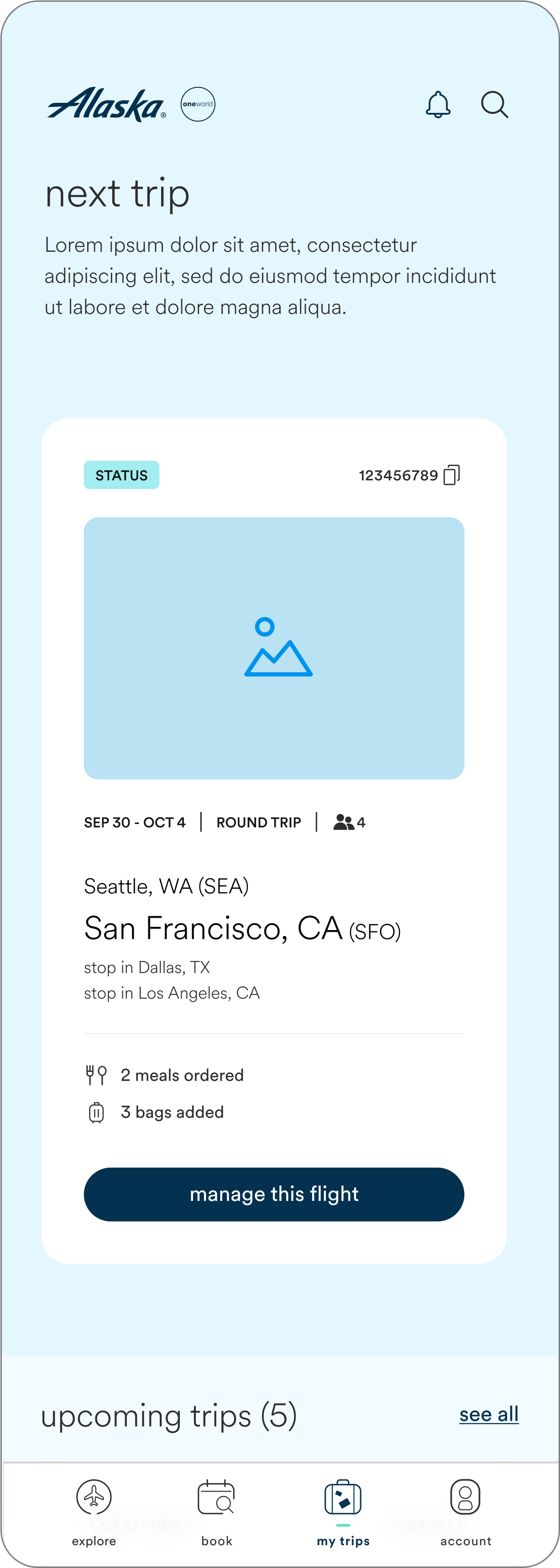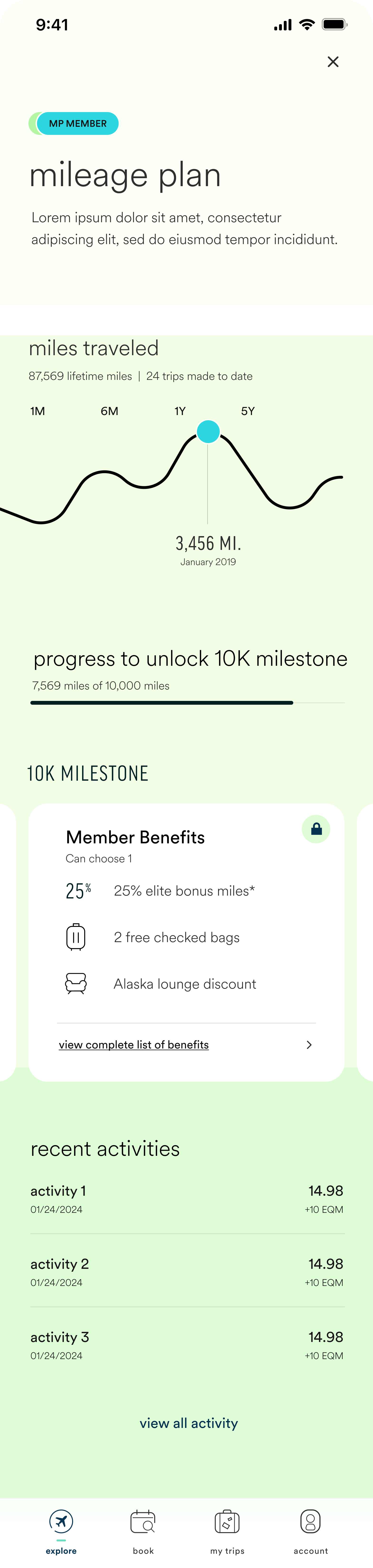 I worked on various core features within the yet-to-be-released updates on the Alaska Airlines app and website, mainly revolving around how the new loyalty program user experience would be like and pushing new ideas to Alaska Airlines to enhance customer experiences while promoting loyalty.