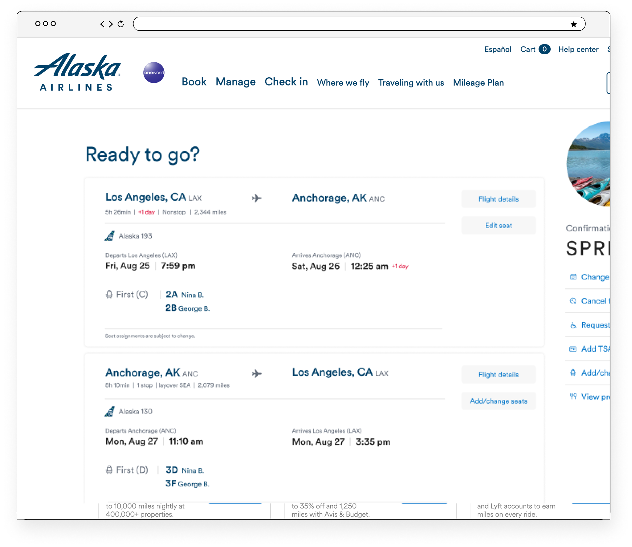 Main advantage of desktop is its ability to display important trip information at a quick glance. It serves as a familiar hub for checking in, viewing boarding details, and discovering opportunities to enhance the travel experience—all in one place.