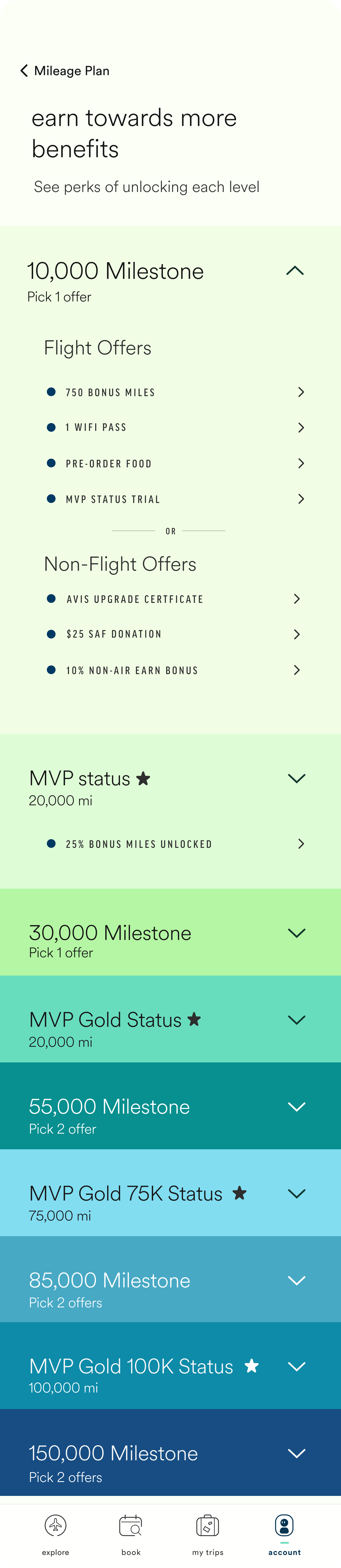 Despite many rounds of new information provided by the client. Our refined solution to the milestones and perk redemptions is to create an easy-to-read accordion style infographic featuring the benefits with progressive disclosure in mind.